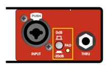 最理想的状态是将衰减器设置在 0dB 位置(按钮弹起)。对于部分高电平输出的信号,可以按下按钮使其信号衰减 20dB ,避免信号过载产生削波。当按下按钮时,右侧的 PAD 显示灯会亮起。 |