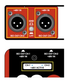 当 +48V 正常供电时,上盖的 +48V ACTIVE 显示灯会亮起。