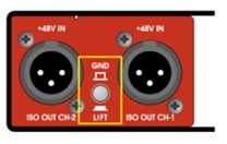GND / LIFT 按钮,是决定输出 XLR 的 1 脚是否接地,弹起时接地;按下时脱离接地。 |