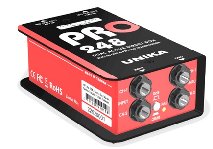 PRO 248 是一款主动式双信道 DI 盒,不同于传统 DI,PRO 248 使用的电源是 +48V 幻象电源,而不是传统的 9V 干电池,因此使用者可以在混音机上或外接幻象电源供应器供电给 PRO 248,供电回路和输出信号线共享,无需额外电源导线,上盖预置 +48V 显示灯;+48V 电路特别选用英国 OEP PT-4 脉冲变压器。
