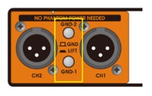 内建的通道独立平衡式隔离变压器已经解决了电位差漏电问题。当系统因为不良配线造成接地环路,可以透过 GND/LIFT 按钮消除噪音。